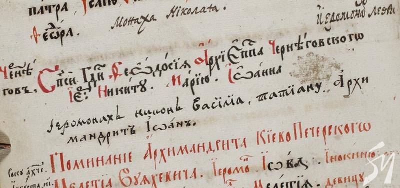 У цьому афонському пом’яннику робили записи на вічний спомин представники української козацької старшини та церковні діячі, які здійснювали пожертви на Святу Гору Афон в XVII - XVIІI ст. Якраз серед таких жертводавців є і чернігівський архієпископ Феодосій.