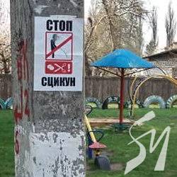 В радянському робітничому мікрорайоні Шерстянка в Чернігові креативно попереджають неохайних громадян вкрай низького культурного рівня про те, що не можна виконувати випускання сечі в районі дитячого майданчика.