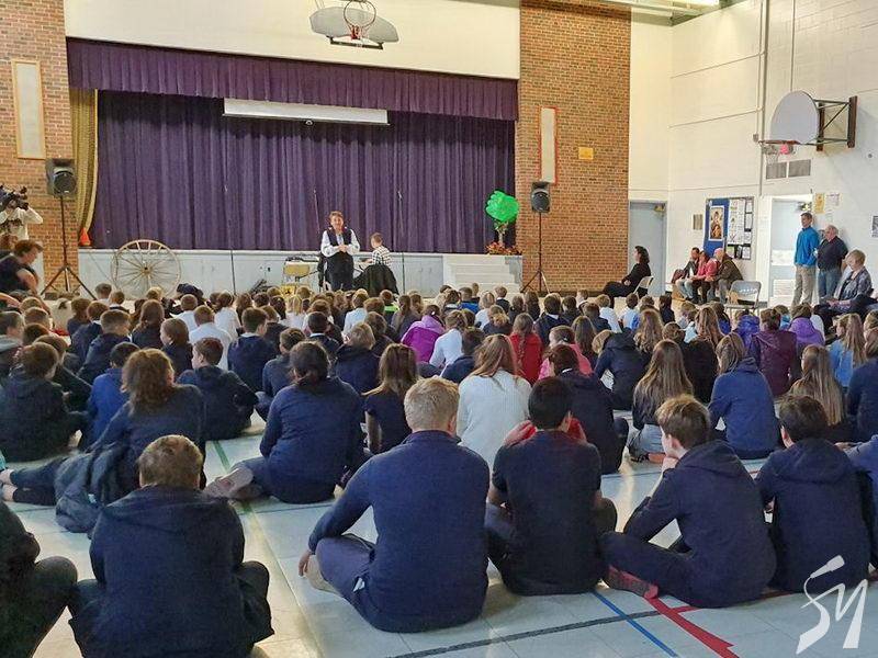Виставу відвідали 150 дітей, майже вся школа. Saint Josaphat's Ukrainian Catholic Cathedral – одна з чотирьох цілоденних українських шкіл регіону Онтаріо, розповідає Юрій-Роман Клюфас, керівник фестивалю Bloor west village Toronto Ukrainian festival. Тут діти вчаться з першого по восьмий клас, а фінансується вона коштами платників податків. Юрій-Роман Клюфас був одним з перших її учнів. А зараз саме на його запрошення до школи завітали українські актори з Дніпра.