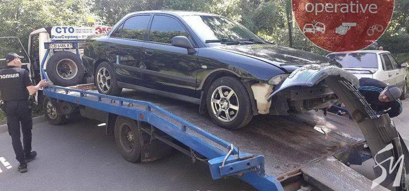Судячи з фото з профільного Telegram-каналу «Чернігів оперативний», розбиратися з ситуацією явилися аж два екіпажі поліції, панові скрутили руки за спину, а легковик забрали евакуатором.