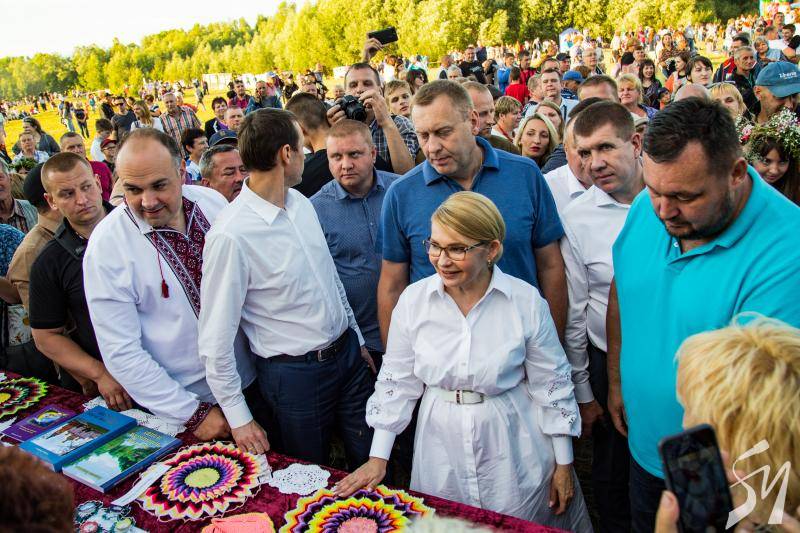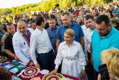 На святкуванні Івана Купала завітала лідерка ВО “Батьківщина” Юлія Тимошенко. Її зустріли дуже тепло. Місцеві жителі довго не відпускали її з обіймів. Багато фотографувалися, запитували про сьогодення. Тимошенко з годину йшла до сцени – охоче спілкувалася з людьми і переглядала вироби місцевих майстрів.