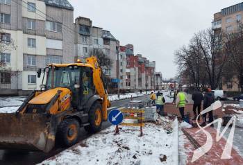 На вулиці вже повністю відремонтоване дорожнє покриття і наразі укладається пішохідна зона.
