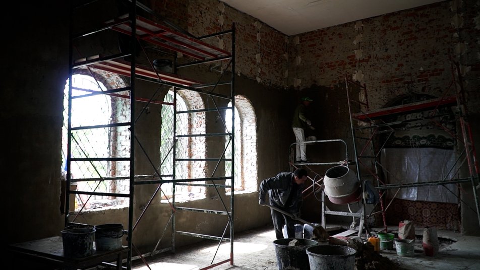 "Сюди або танк, або БТР заїжджав і їздив по колу, крутився на території. Біля господарчого блоку, біля паркану, по всій території нашого храму валялися залишки їжі. Там їли, там смітили, і тут, виходить, і жили. Ось тут жодні двері не вціліли, жодне вікно. Як кажуть, тде спали, там і… ходили", – говорить Лілія Шульга.