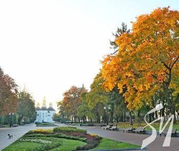 ХУДОЖНИК –ЖОВТЕНЬ натхненно розмальовує Чернігів жовтими і помаранчевими фарбами. А сонце яскраво підсвічує його роботу з усіх боків.