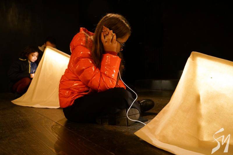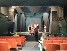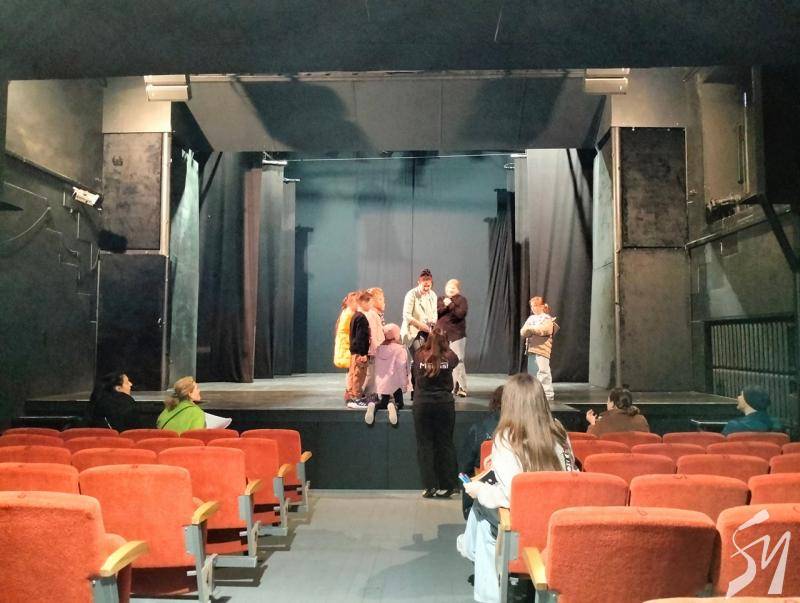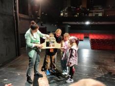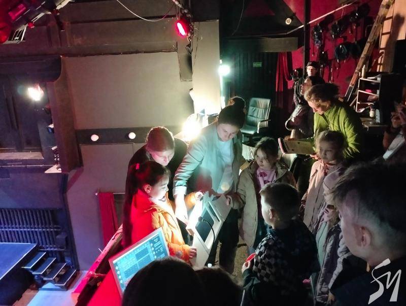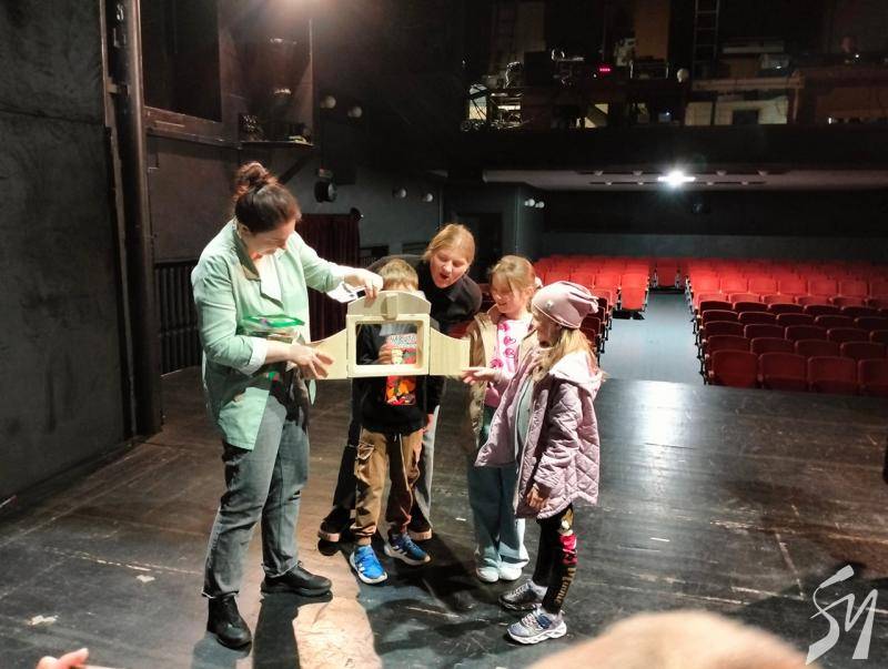 Саме в цьому театрі дітям і їх батькам розповіли, як народжуються театральні вистави. Юним вручили іграшкову сцену, і вони розповідали з неї про те, де вони перебувають в театрі. Школярі відвідали цех реквізиту і костюмів. Побували на балконі, з якого освітлюють сцену і де працює звукорежисер. Спустилися в гримерну, де наносили грим на малюнки персонажів. І врешті-решт вийшли на сцену, де розповіли про побачене і погралися.