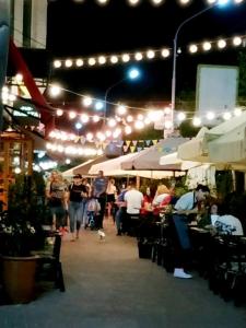 Центральна алея від площі до Катеринки у броунівському русі. Починається з латинських ритмів біля сцени. Продовжується фонтанним хітами.