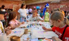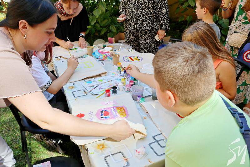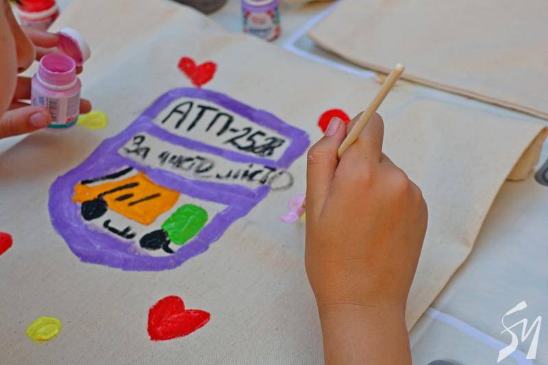 А діти, які вчаться чи уміють малювати, експериментували з нанесенням емблеми підприємства, що слідкує за чистотою міста - на торбинки
