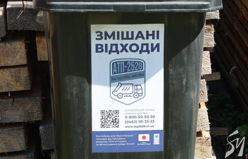 Наприклад, контейнери для змішаних відходів, подаровані ПроООН і куплені коштами уряду Японії. Щоб чернігівці не смітили.