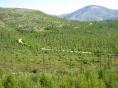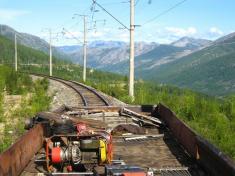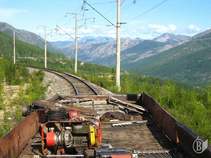 Утренний рабочий поезд в Таксимо являл собой локомотив, один плацкартный вагон без окон в обоих тамбурах и прицепленную к вагону открытую платформу. В вагоне ехали по большей части рабочие-железнодорожники, а на платформе – их орудия труда: лопаты, ломы, рельсовые тележки, поддоны, електроинструменты, небольшая дизельная электростанция. В вагоне свободного места не было, потому несколько часов стоял в тамбуре, любуясь красотами сибирской природы (поезд ехал как раз между Северо-Муйским и Делюн-Уранским хребтами Сословного нагорья). Иногда в тамбур выходили покурить железнодорожники и интересовались сутью моего путешествия.