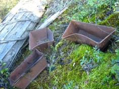 Роздвигаючи руками стланик і кущі, я оглядав один барак за іншим. Здебільшого вони були дерев’яні або глинобитні. Дахи всюди попровалювались, на 1-1,5 м над землею височать тільки залишки стін, серед трави, жовтих та фіолетових квітів іван-чаю лежать дверні косяки та віконні рами. Під ногами можна знайти форми для випічки хлібу, алюмінієві ложки і миски, заїржавілі відра, цвяхи, інші металеві предмети.