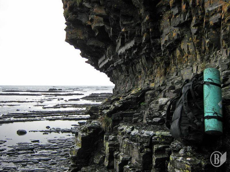 Оставался единственный выход – карабкаться на скалы. Но это оказалось ой как сложно! Горная порода была далеко не крепкой, камни вырывались из-под ног и летели вниз, рукам почти ни за что было уцепиться. Когда достиг высоты приблизительно 6 метров над водой, понял, что когда буду лезть дальше вверх, то рискую сорваться со скалы вместе с камнями, за которые буду цепляться. Вниз пути были отрезаны (вода продолжала прибывать), оставаться на месте тоже не мог, потому что отлив должен был начаться через 12 часов.
