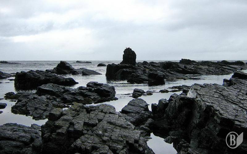 Следующий день стал самым тяжелым за время похода по острову. Еще накануне, осмотрев в бинокль тихоокеанское побережье, понял, что просто так его не пройти, потому что во многих местах почти отвесные скалы подходили к самому океану. Правда, при себе была карта отливов, которую дал Игорь Глушак, но опыта пользования ею у меня не было. Кстати, Игорь предупреждал меня и о том, что западное побережье острова значительно неприветливее восточного. Дождь не стихал ночью, не прекращался он и утром. Лишь около 11-и часов утра дождался просветления на небе и оставил домик в бухте Гладковской.
