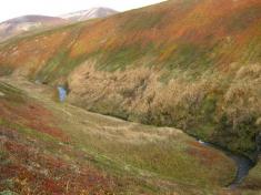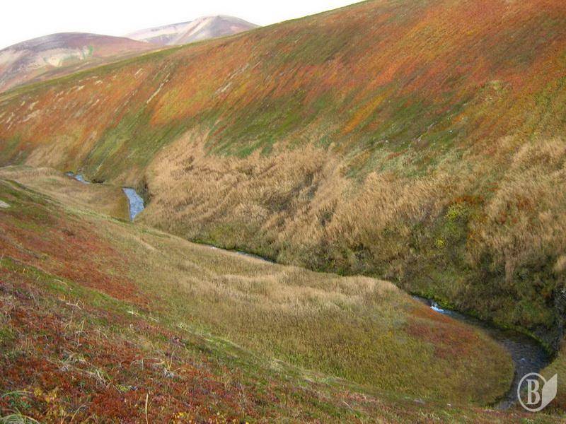 Осень раскрасила склоны командорских гор в десятки цветов: разнообразные оттенки желтого, зеленого, красного. Камни покрыты столетними мхами, у подножия гор и сопок и по долине качались на ветру тонкие стебли трав и увядших цветов. Воздух наполняли лишь пение птичек, журчания ручьев и дуновение ветра. И никаких звуков цивилизации, в которой здесь просто нет потребности.