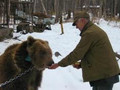 – Ты увидишь медведя. Правда, не в дикой природе, но и не в зоопарке. На одном из егерских участков за 15 км от Елизово живет 3-летняя медведица Маша. Ее нашел егерь, когда браконьеры убили мать-медведицу, выкормил из соски и она теперь живет у него. Корм берет из рук, но ее держат на цепи – зверь все же. . .