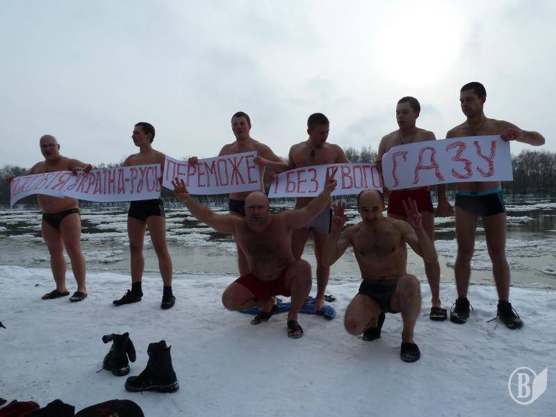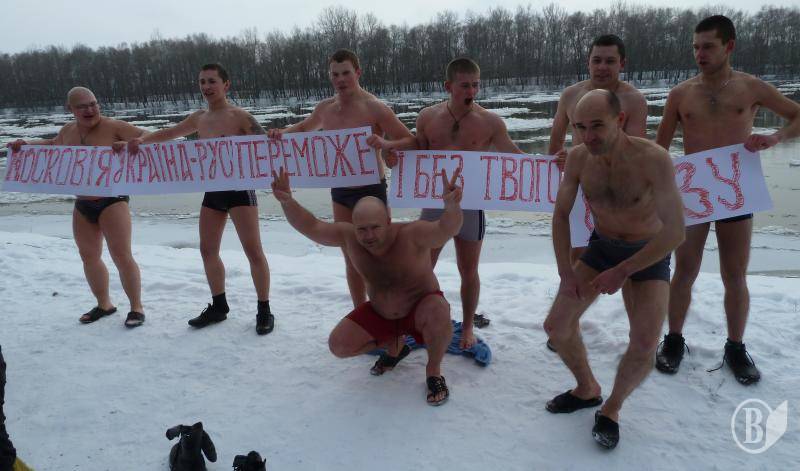 Чернігівська молодь після колективного купання розгорнула гасло з посланням до Московії: "Україна-Русь переможе і без твого газу":).