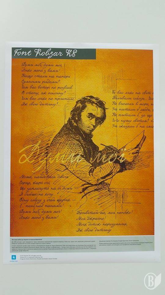 З нагоди 200-річчя з дня народження українського генія, славетного письменника і художника Тараса Шевченка, компанія створила унікальний шрифт КоЬгаг KS, який повністю відтворює почерк Кобзаря.