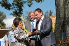 Заступник голови – керівник апарату обласної державної адміністрації Сергій Журман вручив Державну нагороду «Заслужений працівник культури України» директору літературно-меморіального музею імені О.П. Довженка Любові Наконечній.
