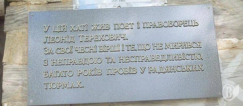 «У 1968 році 27-річний кіномеханік Л.Терехович, обурений антилюдською несправедливою позицією парторга, побив його, за що був позбавлений волі на рік. Маючи вразливу натуру, гостро сприймаючи неподобства системи, він виливав свою душу у віршах. У 1971 році поет-початківець був обурений повідомленням в районній газеті про те, що у Кучинівці 100% виборців проголосували за депутата замість вибулого. Це при тому, що виборча дільниця увесь день стояла зачиненою на замок. Леонід Терехович написав про фіктивні вибори на радіостанцію "Свобода". Лист, за практикою тих літ, вилучений КДБ і став приводом для обшуку. У поета знайшли чимало нелакованих поезій про тоталітарний режим, зокрема "Задолизи", "Про боротьбу з ідеологічними диверсіями", "Є в селі сільрада", "Казка про робітника балду" і т.п. Автора звинуватили у наклепницьких "измышлениях" на КПРС, СРСР, виготовлення листів для направлення за кордон, систематичне слухання антирадянських передач і засудили на два роки позбавлення волі у виправно-трудовій колонії суворого режиму. Відбувши строк, перебуваючи під наглядом КДБ, він був спровокований на бійку і знову отримав строк. Після кількарічного ув'язнення знесиленого поета "лікували" в Чернігівській психоневрологічній лікарні. 22 серпня 1992 року, за припущенням багатьох знайомих Л.Тереховича, його підступно вбито».