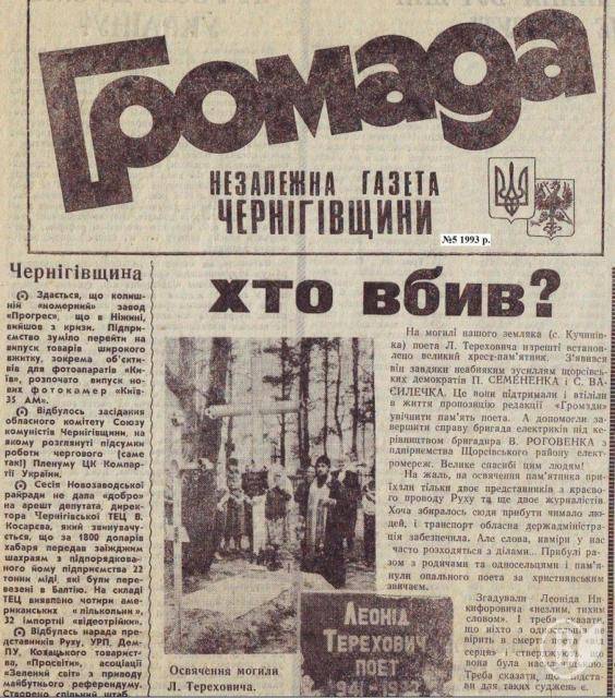 Влітку 2010 року я (авт. статті), при частковому ремонті хати поета, знайшов чернетку листа Леоніда Тереховича в редакцію газети ВР “Голос України”, який він написав на прохання редакції. Ось її повний текст: