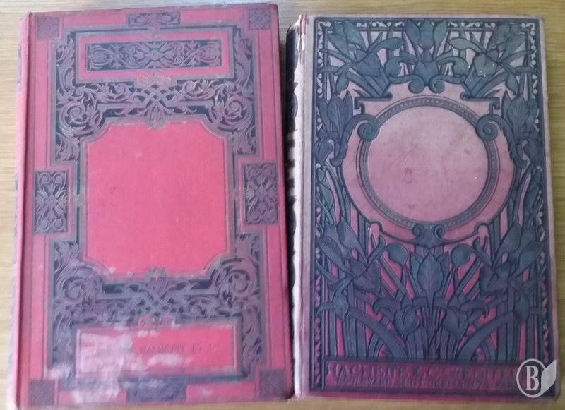 Обидва видання на французькій мові, надруковані понад сто років тому. Одна з написом «Aventures d’un ecolier en rupture de ban» датована 1894 роком, друга – «Les compagnons de la marjolaine» - 1907.