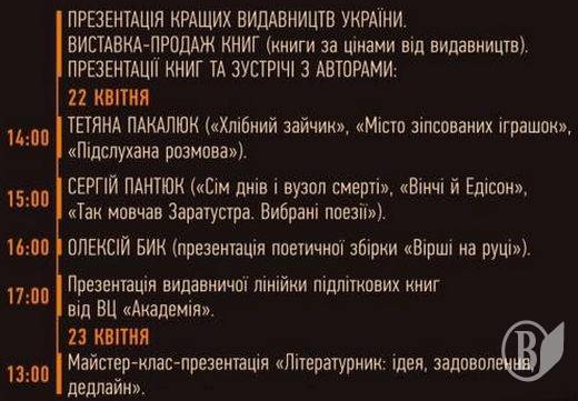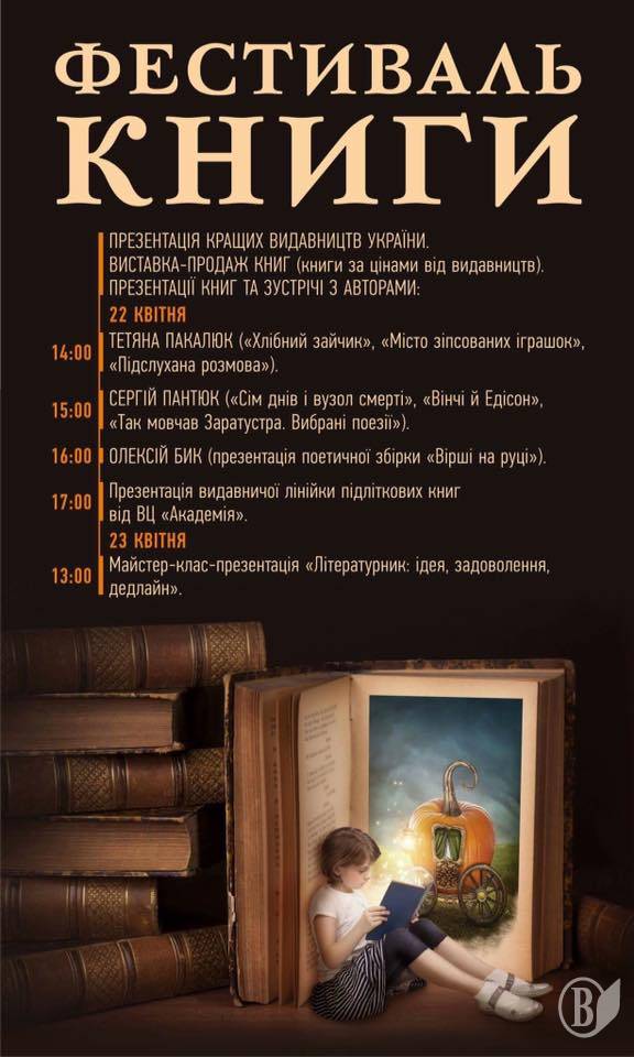 Цього разу – в рамках фестивалю книги, де буде презентація видавців, виставка-продаж книг та зустрічі з авторами.