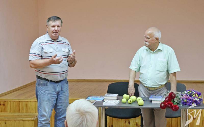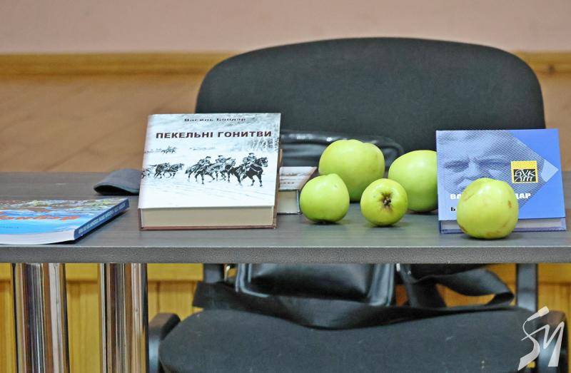 Василь Бондар подарував кілька своїх книг учасникам зустрічі і одну, яка розповідає про творчі майстерні письменників - музею Михайла Коцюбинського.