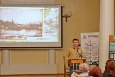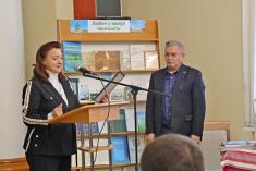 У залі демонструвалася книжково-ілюстративна виставка "Любеч у вимірі тисячоліть", яку прокоментувала модератор заходу – завідувачка відділу краєзнавства бібліотеки Ірина Каганова.