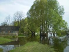 Когда была высокая вода, которая доходила до ворот родительского двора, то мы ходили в школу и в центр села по дорожке через соседские огороды, а затем переходили через деревянный мостик, который ставился только на период наводнения и был достаточно опасным, потому играться на нем детям категорически запрещалось.