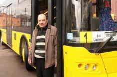 Один з нових тролейбусів виводить на перший маршрут Василь Швидченко. Він один з найдосвідченіших водіїв. Працює вже 33 роки.