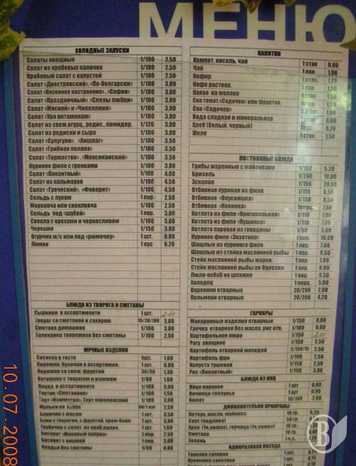 По всему поселку большинство столовых и кафе предлагали комплексные обеды за 20 грн, завтраки и ужины по 10 грн. При чем порции были побольше и можно выбирать меню.