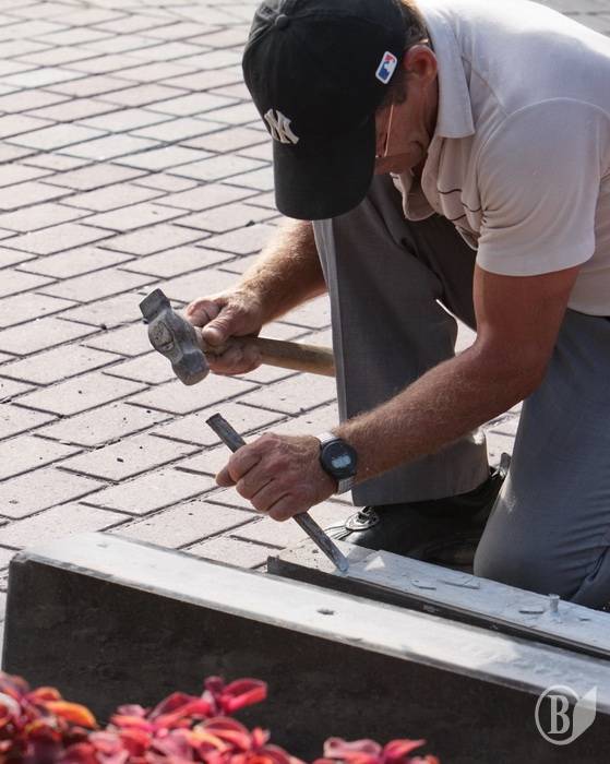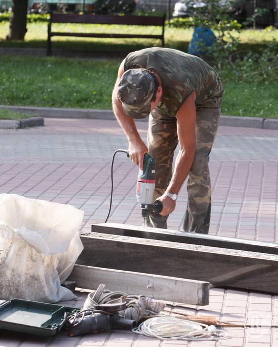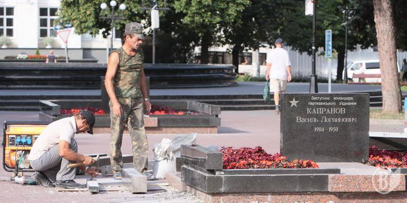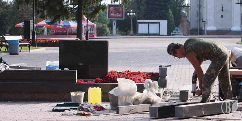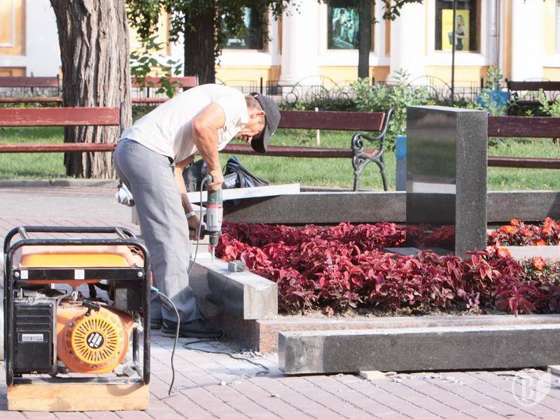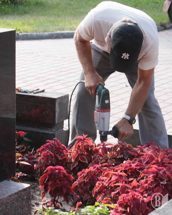 Триває ремонт декоративної огорожі могил у сквері перед міськрадою Чернігова. ФОТО