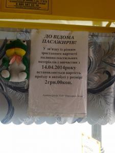 А вже з понеділка 14 квітня на автобусах надприбуткового маршруту №12 з’явились оголошення про підвищення проїзду до 2 грн.
