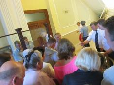 Несколько десятков людей опять пришли под стены управления, чтобы услышать ответы на вопросы: когда они получат деньги и когда в банке будет введена администрация.