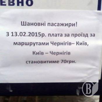 Від сьогодні ціна за подорож від Чернігова до Києва маршруткою становить 70 грн.