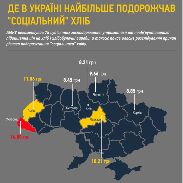 У той же час ціни на соціальний хліб у Чернігові одні з найнижчих в Україні – 9,66 грн – повідомляє сайт «Слово і діло».