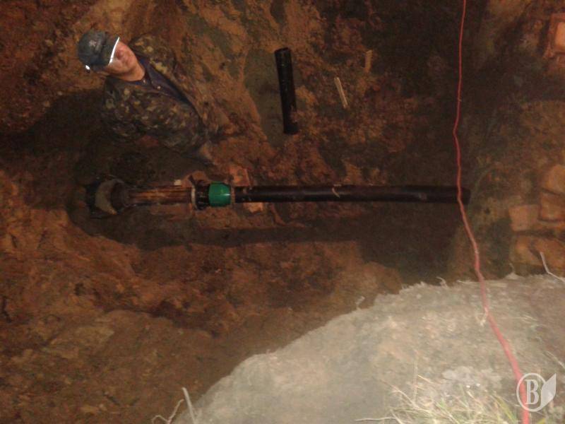 С помощью современных диагностических приборов было обнаружено место порыва. Выполнение работ было усложнено тем, что аварийный водопровод диаметром 100 мм находился под водопроводом диаметром 500 мм и рядом с ним проходил силовой электрокабель. Ремонтные работы проводились на глубине 4 метров бригадой Сергея Гулая, старшим мастером Виталием Мекшуном и мастером Алексеем Билогурой.