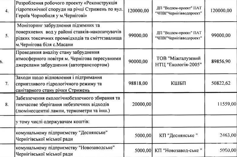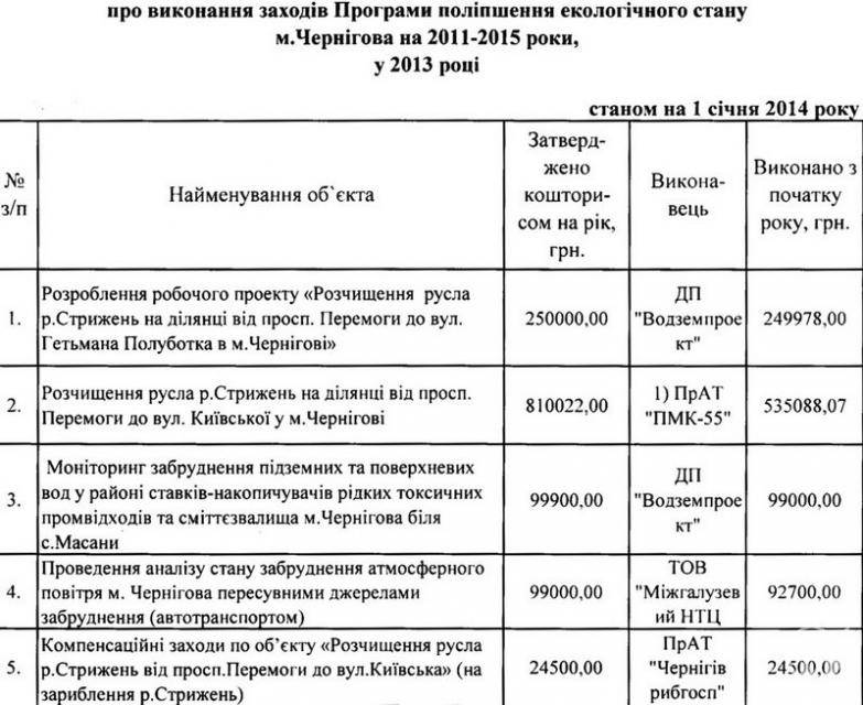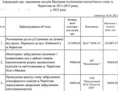 Отчет о выполнении Программы улучшения экологического состояния г.Чернигов в 2011-2015 годах.
