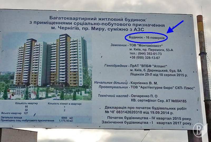 Ось тут на плакаті з інформацією про будівництво – 16-поверховий будинок. Ви бачите там 17-й поверх? Ні?! А на фото самого будівництва він вже є! До речі, а він останній? Чи…