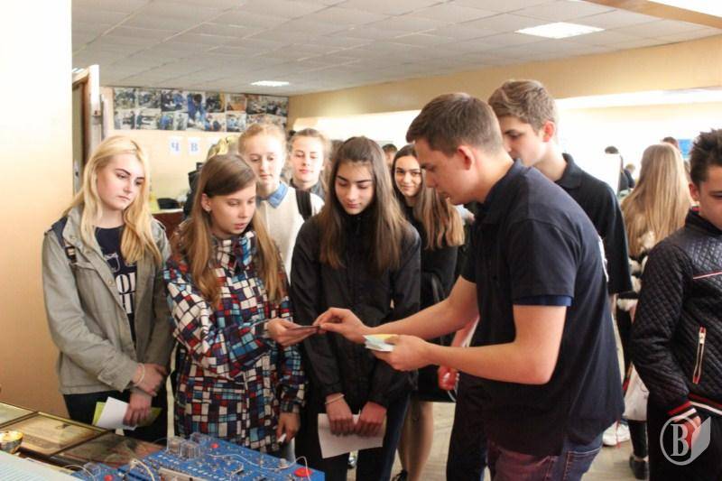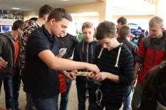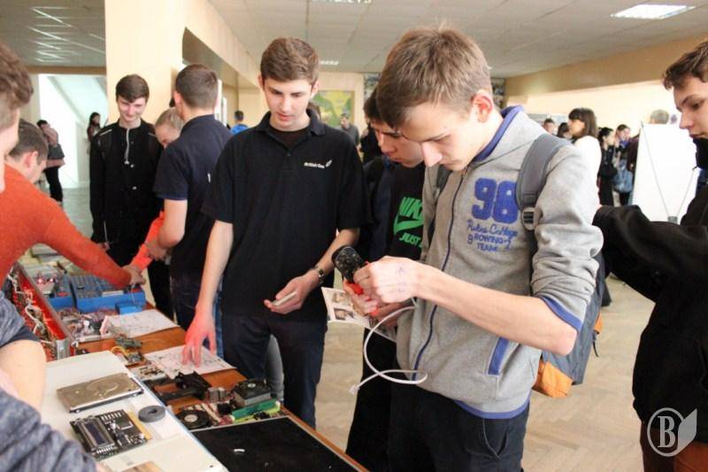 Студенти Іванов Владислав, Рижий Дмитро (гр. ПС-1401), Петрушевець Євгенія (гр. КС-1407) продемонстрували зацікавленим школярам набуті під час навчання в коледжі професійні вміння та навички.