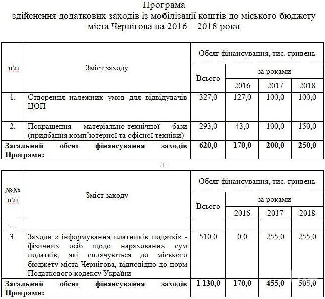 Чернігівська ОДПІ продовжує освоєння коштів, виділених відповідно до Програми здійснення додаткових заходів з мобілізації коштів до міського бюджету міста Чернігова на 2016-2018 роки, затвердженої рішенням Чернігівської міськради від 29.09.2016 року №11/УІІ-12.