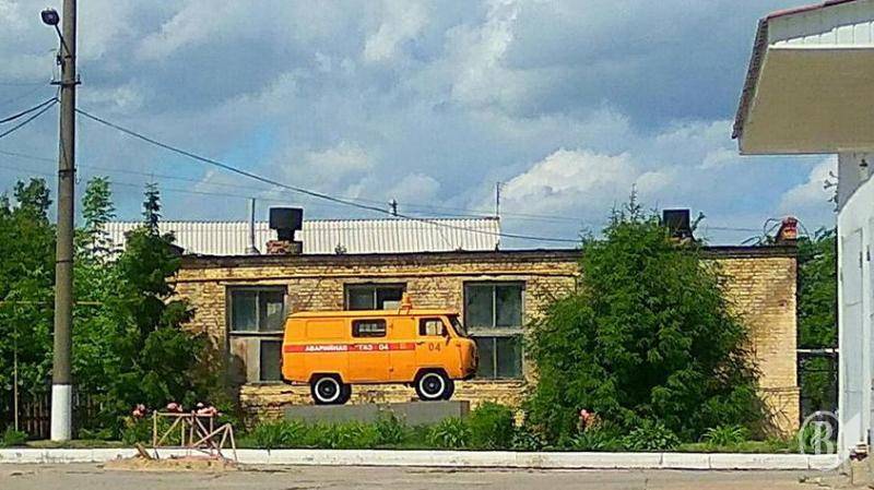 Автомобіль аварійної газової служби «УАЗ-452» з тих, які використовувалися раніше, опинився на постаменті на вулиці Гончарова. де, власне, й базується аварійна служба.