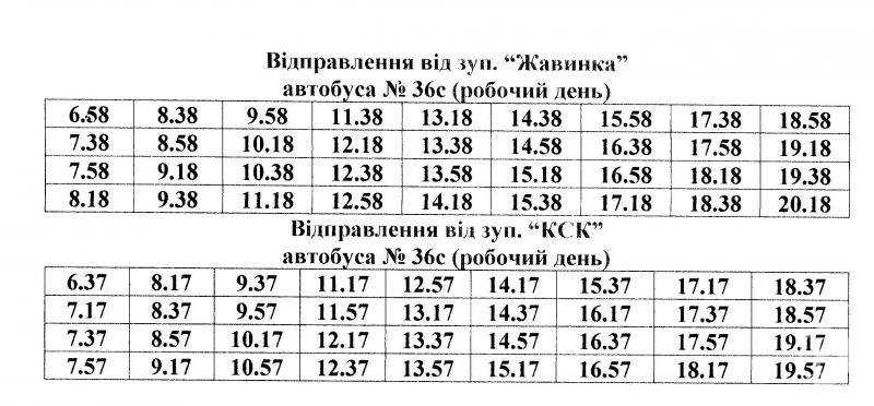 Об’яви щодо розкладу руху автобусного маршруту № 36-с також будуть розміщені на зупинках громадського транспорту.