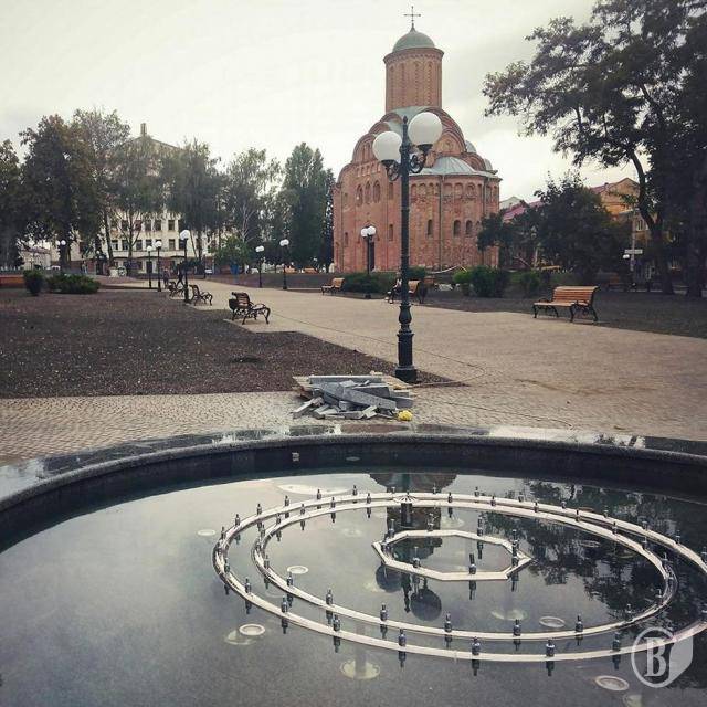 Біля П’ятницької церкви в реконструйованому сквері ім. Хмельницького задзюрчала кольорова «водичка», користуючись термінологією чернігівського мера Владислава Атрошенка – великого любителя будувати у місті фонтани.