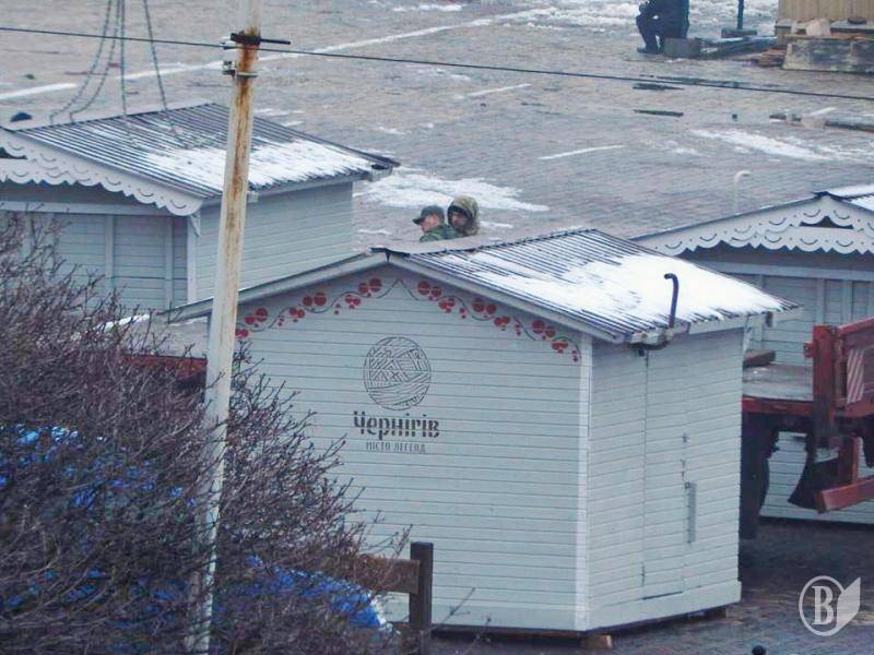 Свято наближається, тож на Красну площу Чернігова вже встановлюються («…на тому місці, де стояли палатки пікетувальників», як казав легітимний під час того пам’ятного брифінгу наприкінці 2013 року)… ні, не тільки йолка, а й торгівельні будки.