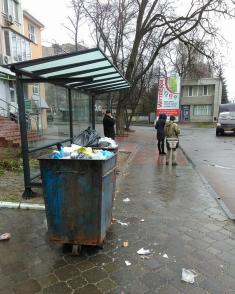 Зупинка громадського транспорту на вул. Льотна в Чернігові регулярно перетворюється на майданчик для контейнерів зі сміттям.