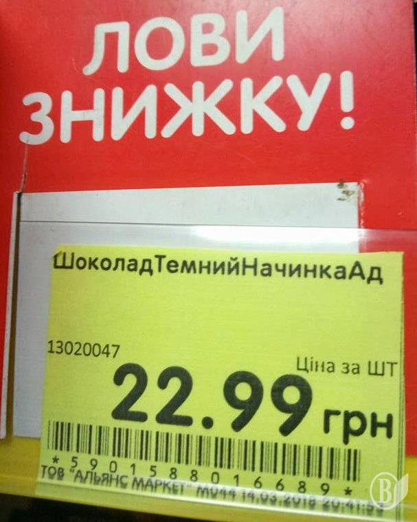 У мережі агазинів «Союз» (принаймні, в одному з них) продаються зі знижкою шоколадки з адовою начинкою.