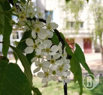 А на йому підпорядкованій території, та й усі двори на перехресті вулиць Рокоссовського і 1 Травня потопають у білій черемховій повені.