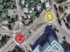Там (коло №2 на схемі нижче) наноситься відповідна розмітка на дорожнє полотно. Водночас встановлять відповідні дорожні знаки (рух по колу).