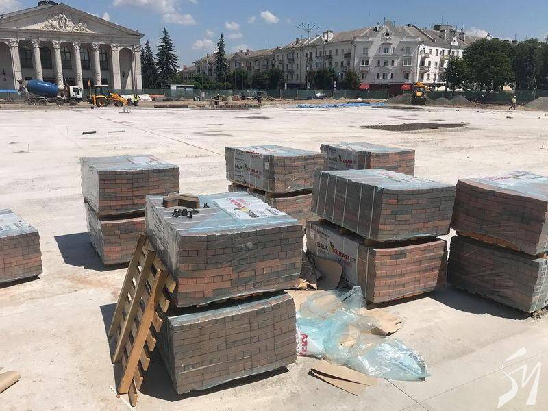 У Чернігові на Красну площу, де триває реконструкція, завезли клінкерну цеглу.