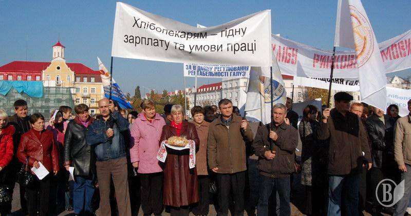 Сегодня, 22 октября в Чернигове состоялся митинг работников хлебопекарской отрасли. Хлебзаводы работают с убытком, оборудование у них старое, а работники получают маленькую зарплату.